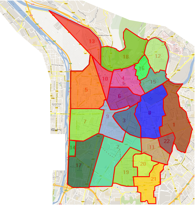 Cette carte, rédigée par le Comité de Liaison des Unions de Quartiers (CLUQ) de Grenoble vous permettra de trouver quelle est votre union de quartier parmis les 22 UQ de Grenoble :
