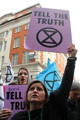 - Deux articles de Reporterre : Contre l’effondrement, Extinction Rebellion prône la désobéissance civile et En Angleterre, le mouvement Extinction Rebellion lance l’insurrection pour le climat