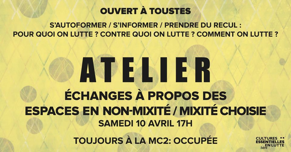Atelier public : Échanges à propos des espaces en non-mixité ou en mixité choisie