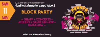 > 14h : BLOCK PARTY (graff + concerts + danse hip-hop + etc) MC Métis + La Batucavi (rappeur activiste congolais)