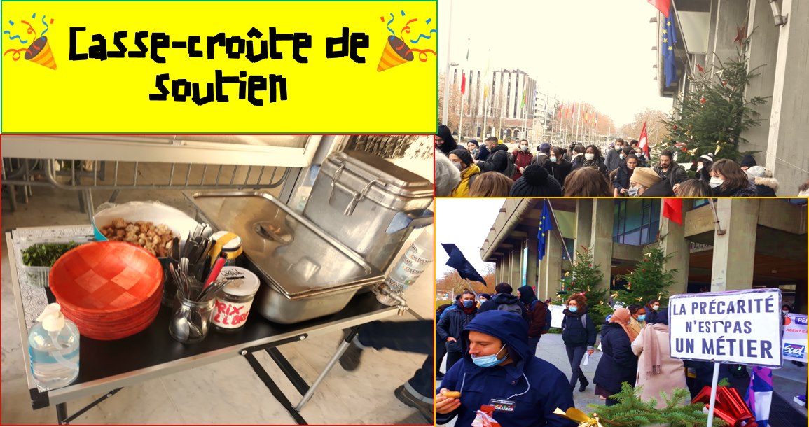 Un rassemblement de soutien s'organise devant la mairie, avec casse-croûte sur place pour la caisse de grève et boissons chaudes.