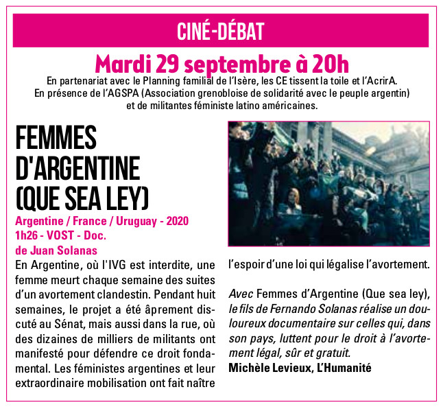 Ciné-débat : Que Sea Ley (sur les luttes féministes en Argentine)