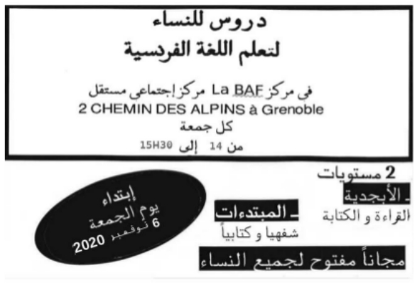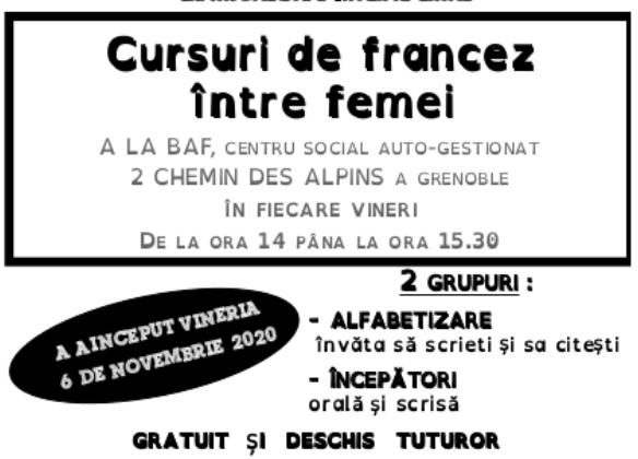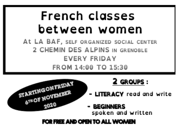contact : cours-francais-vendredi (at) riseup.net ou 06 21 55 23 97