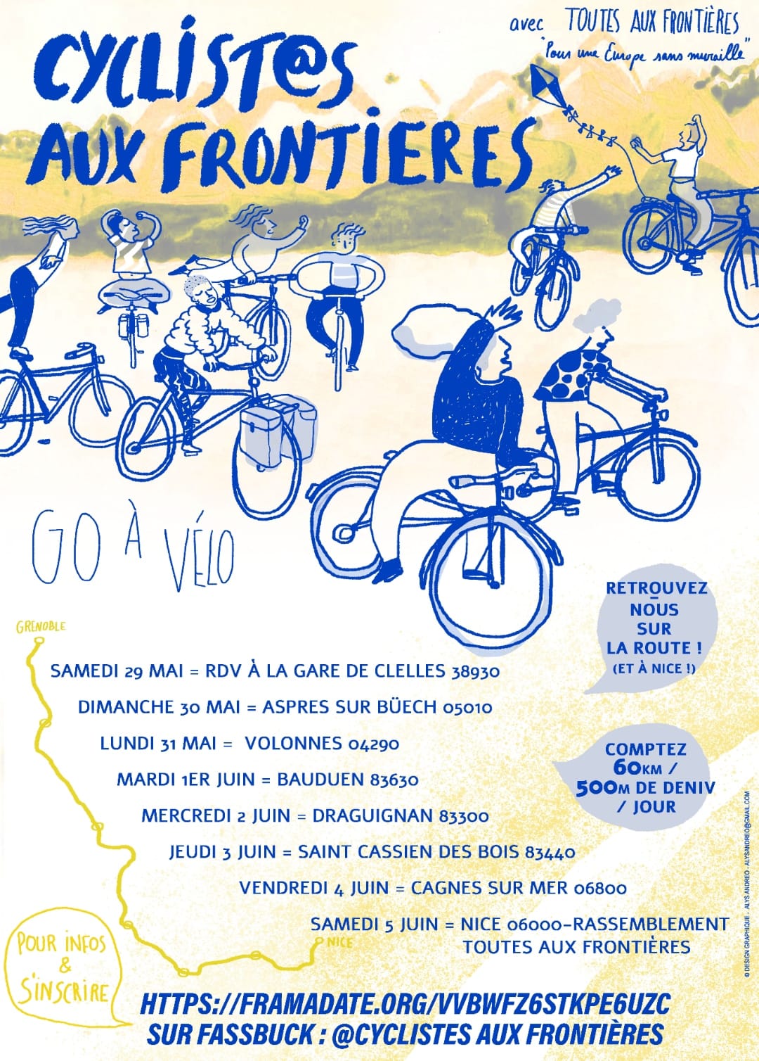 Un départ en vélo s'organisent le 29 mai de Clelles (Trièves), avec près d'une quarantaine de cyclistes, en mixité choisie, sans mec cis.