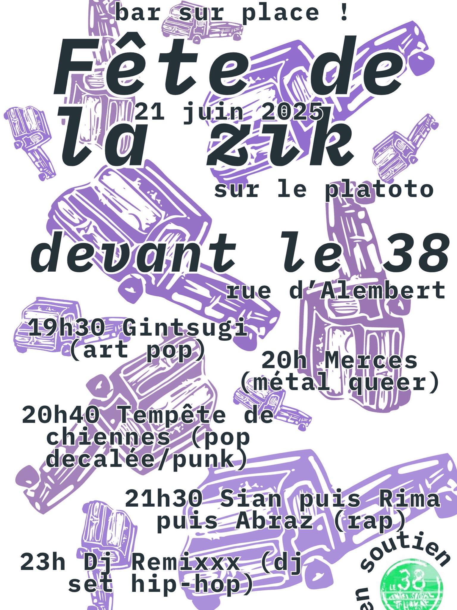 Viens fêter la fête de la musique devant le 38 rue d’Alembert. Les travaux avancent fort au 38 mais il faudra se contenter encore quelques temps de faire la fête dans la rue ! Et pour ça on vous promet une scène épique sur le plus beau des camions !