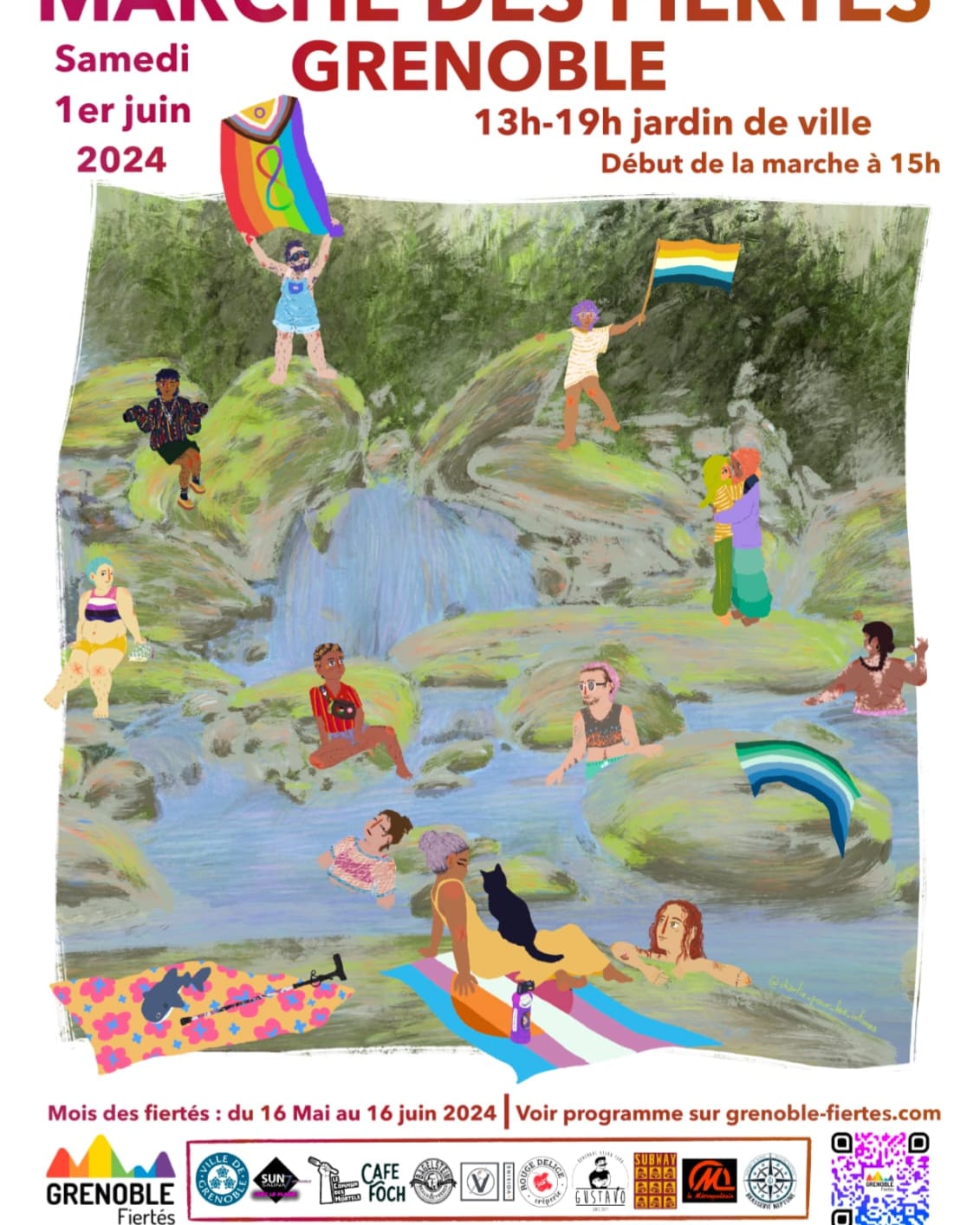 Rdv à partir de 13h au jardin de ville pour le village associatif (stands de différentes associations Lgbtqia+ locales, mais aussi buvette, stands de maquillage et vente de drapeaux Lgbtqia+ au profit de l'association Grenoble fiertés qui organise l'événement, qq stands de restauration vegan) mais aussi un spectacle haut en couleur avec le collectif Libule et des artistes de drag (Honey Nasty, Mayb et Irina)et des prises de parole engagées.
