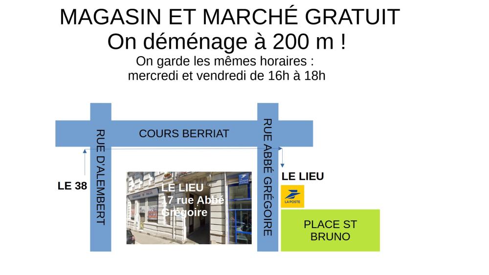 ATTENTION, PENDANT LES TRAVAUX AU 38 RUE D'ALEMBERT, LE MAGASIN GRATUIT EST DÉPLACÉ AU LÎEU (17 RUE ABBÉ GRÉGOIRE), AUX MÊMES HORAIRES.