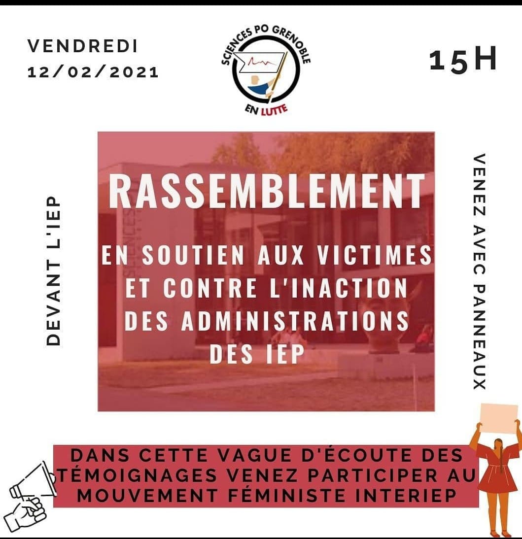 Rassemblement de soutien devant Sciences-Po Grenoble (1030 avenue centrale, campus) pour les victimes de violences sexistes et sexuelles dans tous les IEPs de France.