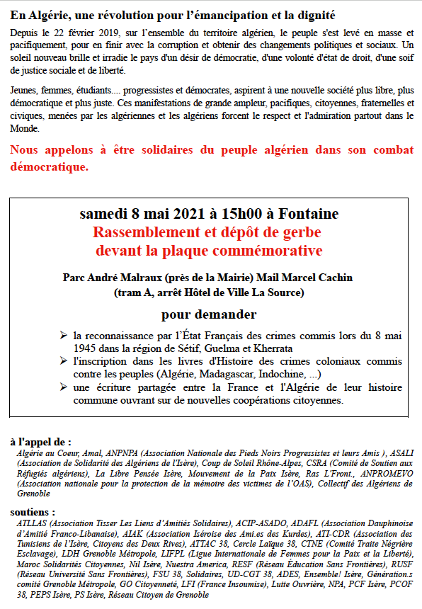 Rassemblement pour la reconnaissance par l'État Français des massacres de Sétif, Guelma et Kherrata le 8 mai 1945