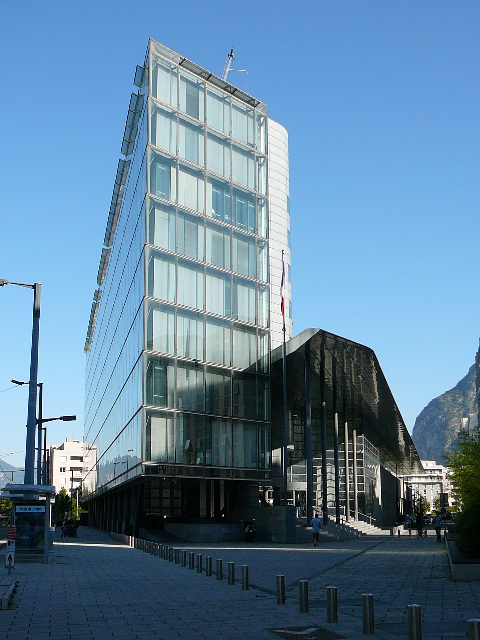 Le Palais de justice rassemblele tribunal d’instance, le tribunal de grande instance, le tribunal correctionnel, le tribunal de police, la cour d’assises, la cour d’appel, le tribunal de commerce, le tribunal pour enfants et le conseil de prud’hommes de Grenoble.