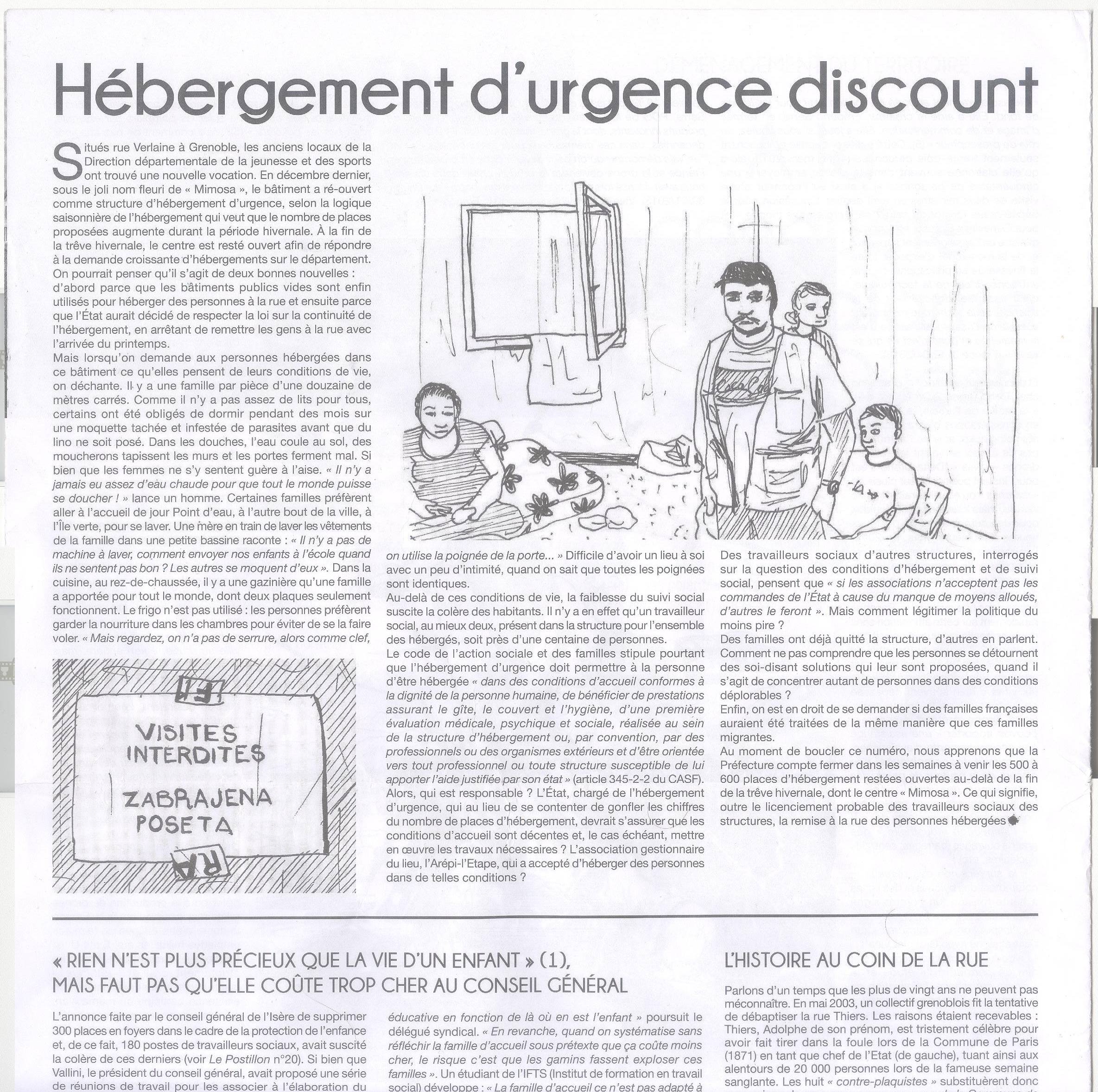 Cet article, paru dans le Postillon n° 21 (été 2013) fait état de la réalité peu glorieuse de l'hébergement d'urgence à Grenoble pendant l'hiver 2013.